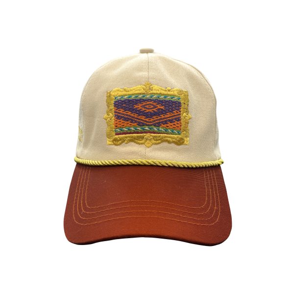 Gorra de lona regulable, con bordado en dorado más aguayo, en colaboración con Huari.