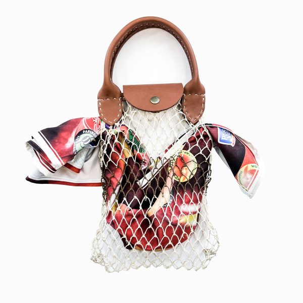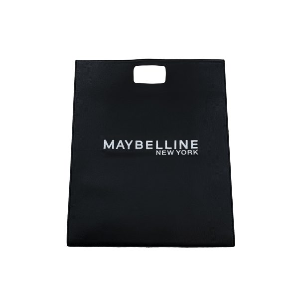 Cartera en forma de bolso de compra en colaboración con Maybelline New York, todo en cuero.