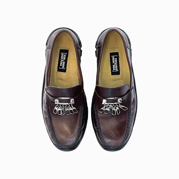 Zapatos mocasines, en full cuero con suela track en color vino, con detalles en charms de acero inoxidable. Talla: 42eur / 8.5 us