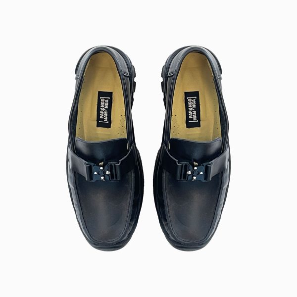 Zapatos mocasines, en full cuero con suela track en color negro, con detalle en broche de metal. Talla: 42.5eur / 9us