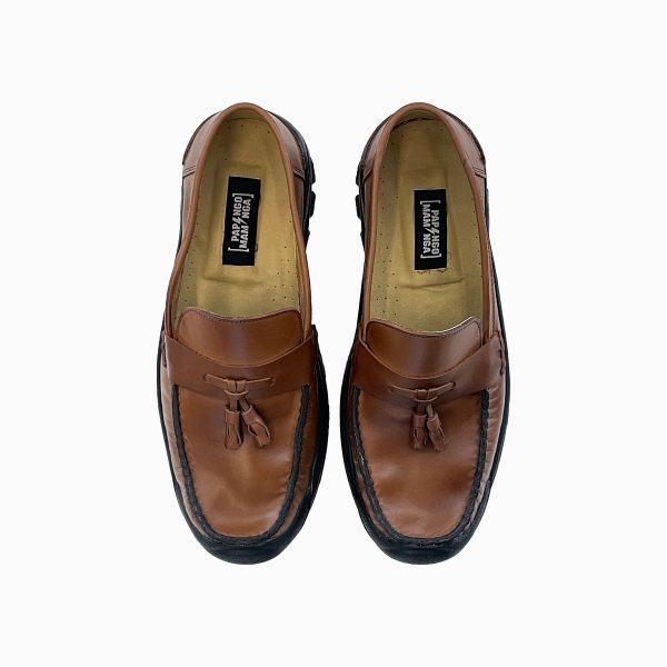 Zapatos mocasines, en full cuero con suela track en color madera. Talla: 43eur / 9.5 us