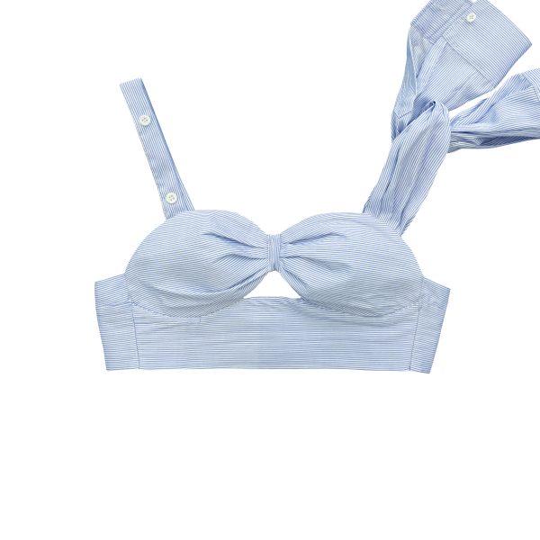 Camiseta sin mangas de mujer blanca en colaboración con Maybelline New York, con textil suave, detalle en encaje y estampado.