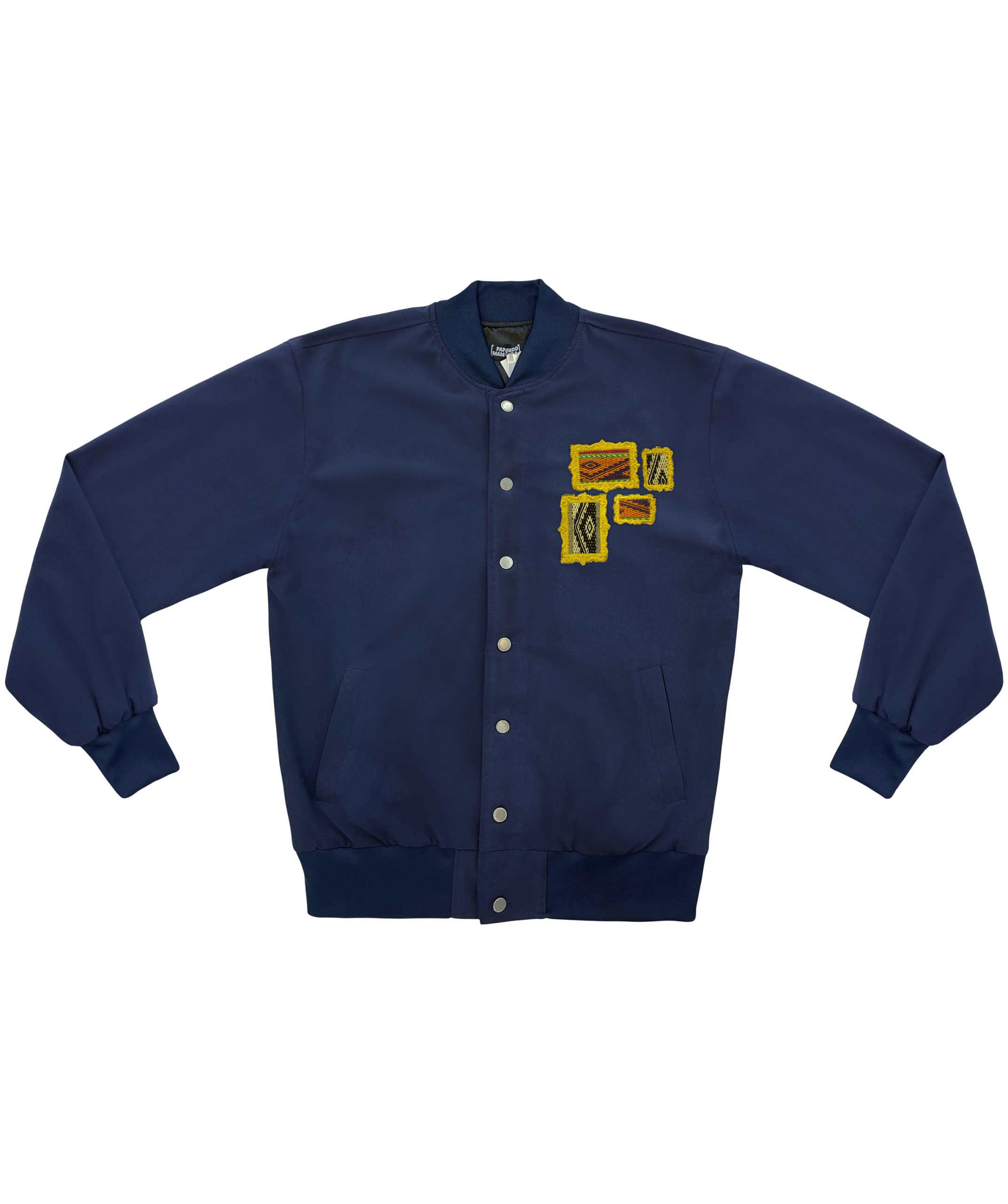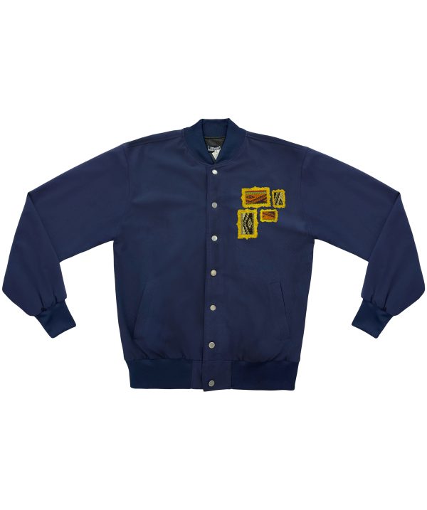 Chaqueta con téxtil de poliester, detalles en bordado en colaboración con Huari.