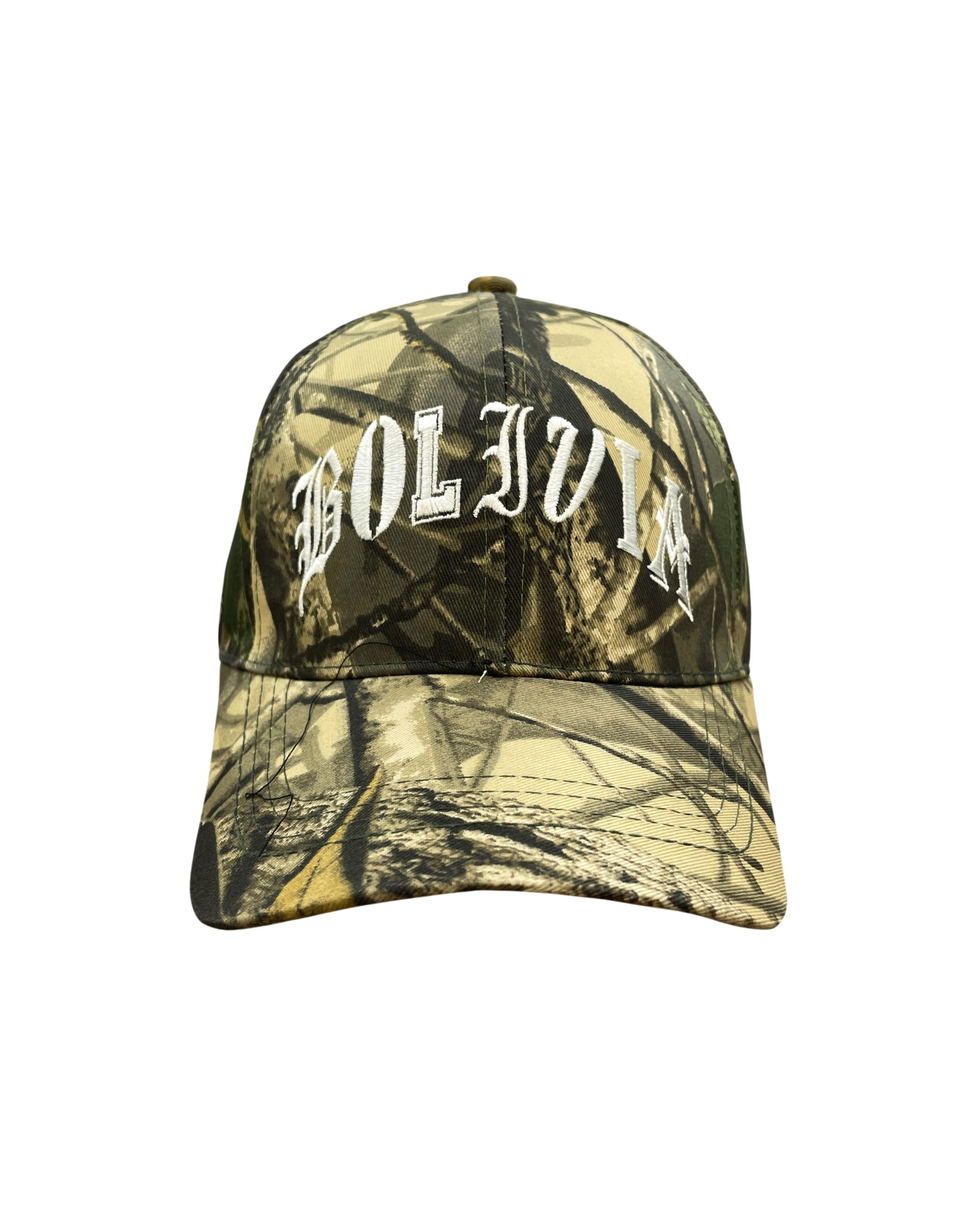 Gorra de lona con patron en real tree regulable, con detalles en bordado blanco.