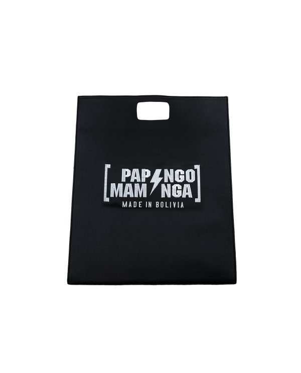 Cartera en forma de bolso de compra en colaboración con Maybelline New York, todo en cuero.