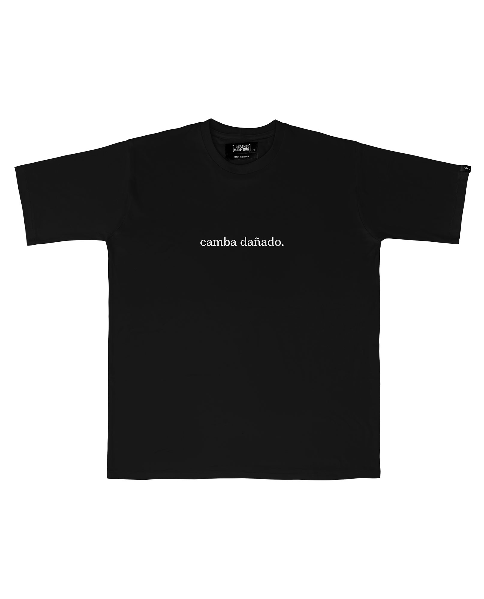 Polera oversize negra, de textura suave. Con estampado en blanco.