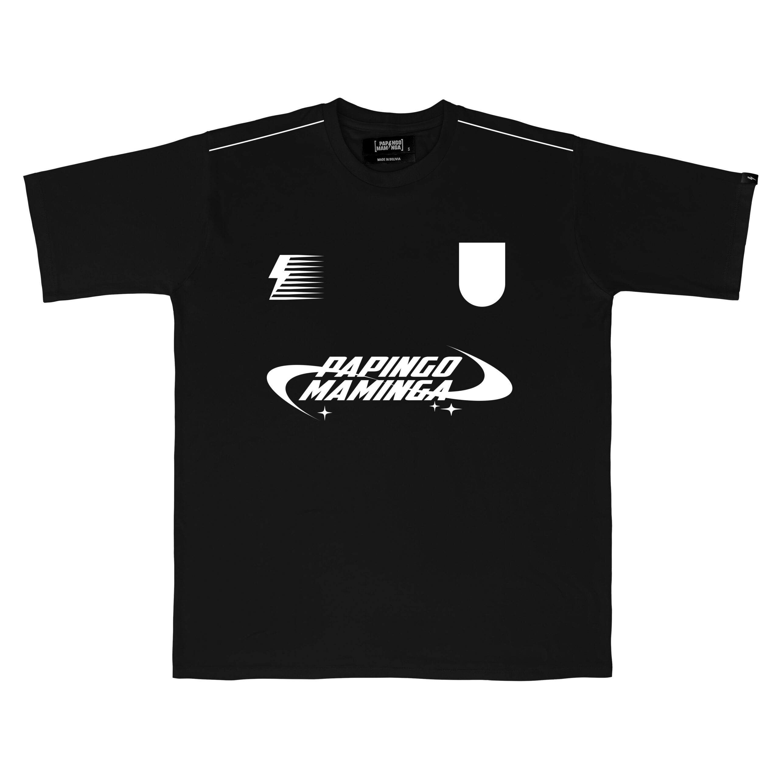 Polera oversize negra, de textura suave. Con estampado en blanco.